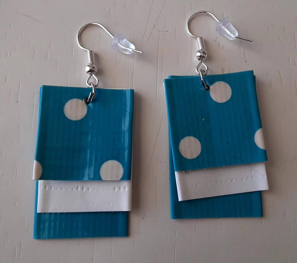 These accessories are sure to get noticed! Made out of duct tape, these triple-layered earrings are a great way to show of your favorite character or team! The earrings measure approximately 1″ wide by 1.5″ long (not including the hooks). I use the hooks that are sold at hobby lobby. They are mixed metal. The earring hooks also include silicone earring back, so you don’t lose those earrings. Due to the handmade nature of this item, it may look slightly different than that shown in the picture. See pictures for front and back view, as well as what the earrings look like when worn.