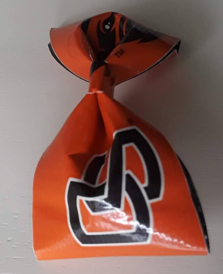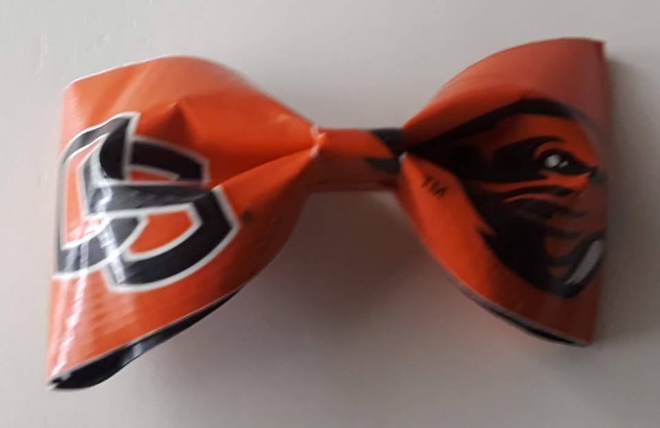 These three-dimensional bows are sure to get you noticed! With an easy-to-use alligator clip back, they are sure to fit your style. These versatile bows can also double as a bow tie! Simply slip the alligator clip in the top button hole of your button up shirt, and you’re ready to go! See picture sample above. Measures approximately 3″ wide x 2″ tall. Due to the handmade nature of this item, it may vary slightly from that pictured. Made out of duct tape. I use only the best brands for my customers! Completely made out of Duck Brand duct tape and Jewelry Shoppe alligator clip.
