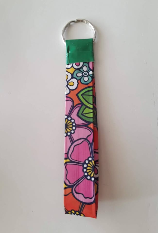 This flair for your key ring is sure to get noticed! This key chain doubles as a wristlet. Wear on your wrist so you won’t lose your keys. Your keys will be easy to find and pull out of your purse or pocket, with these handy key chains. Standard size ring on each key chain.  Each sold separately. Hangs approximately 6″ long, about a 12″ round loop.  Due to the handmade nature of this item, it may differ slightly from the picture.  Made out of duct tape.